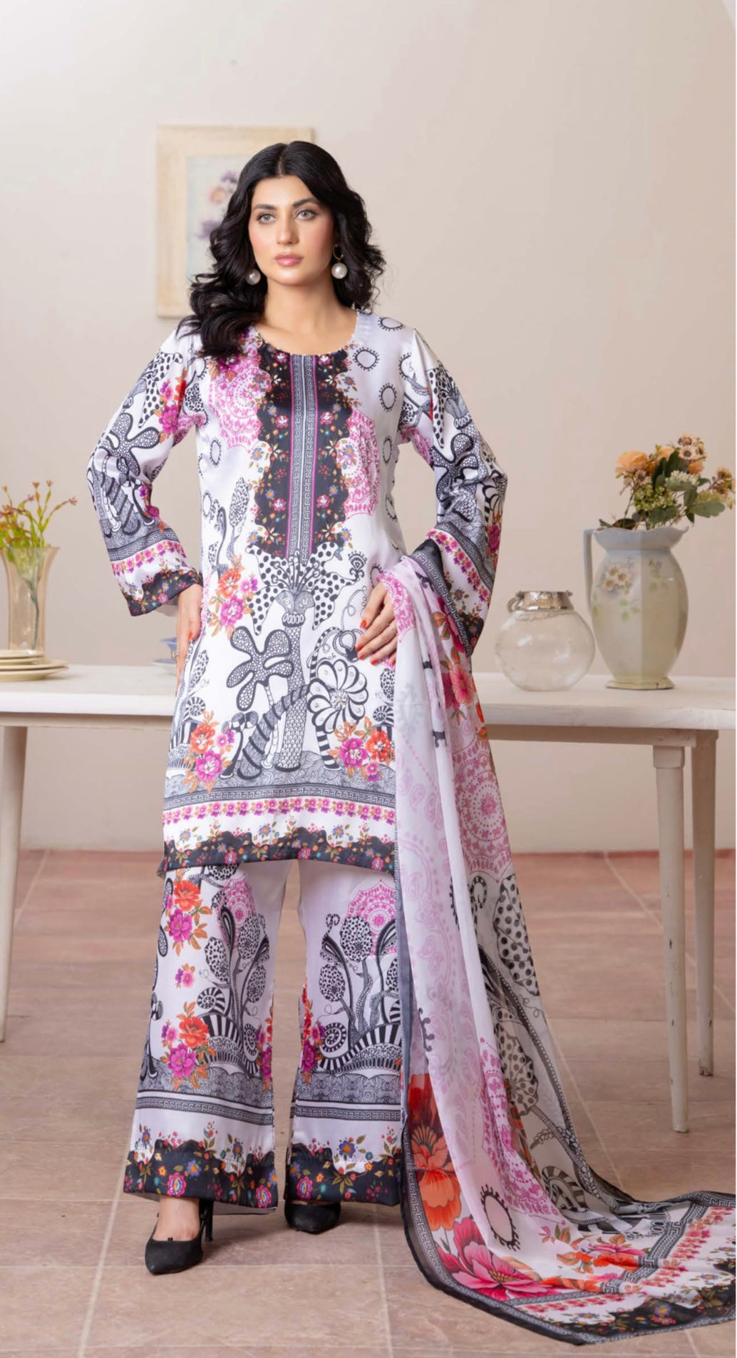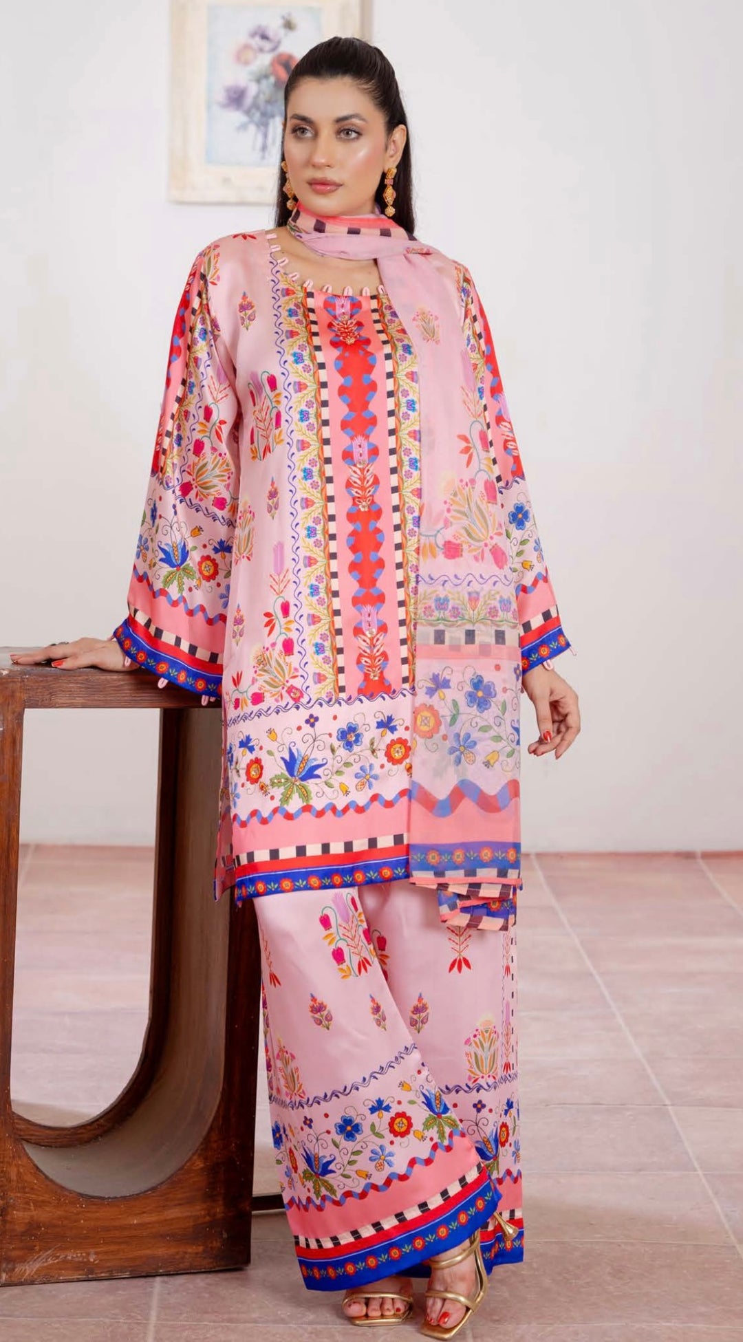 TSH06- EMBELLISHED SILK PRINT 3 PIECE SUIT