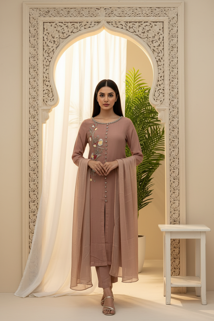 327D- Embroidered Chiffon 3 Piece Suit