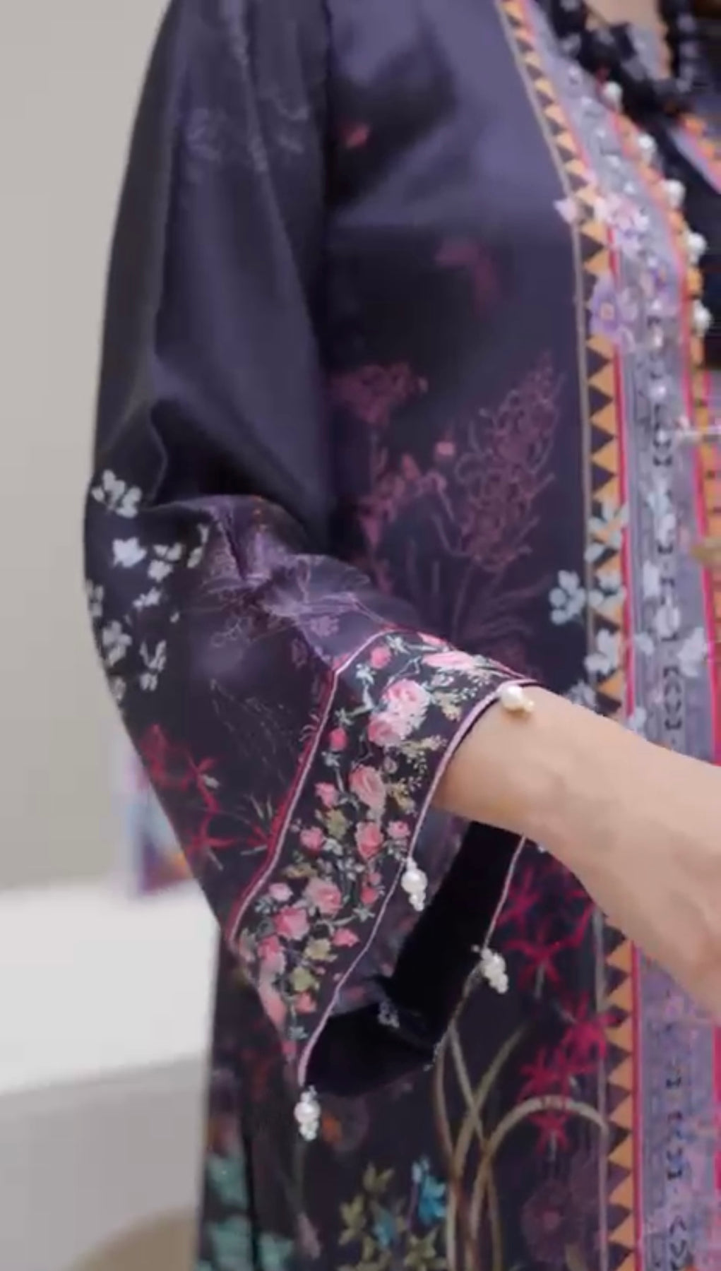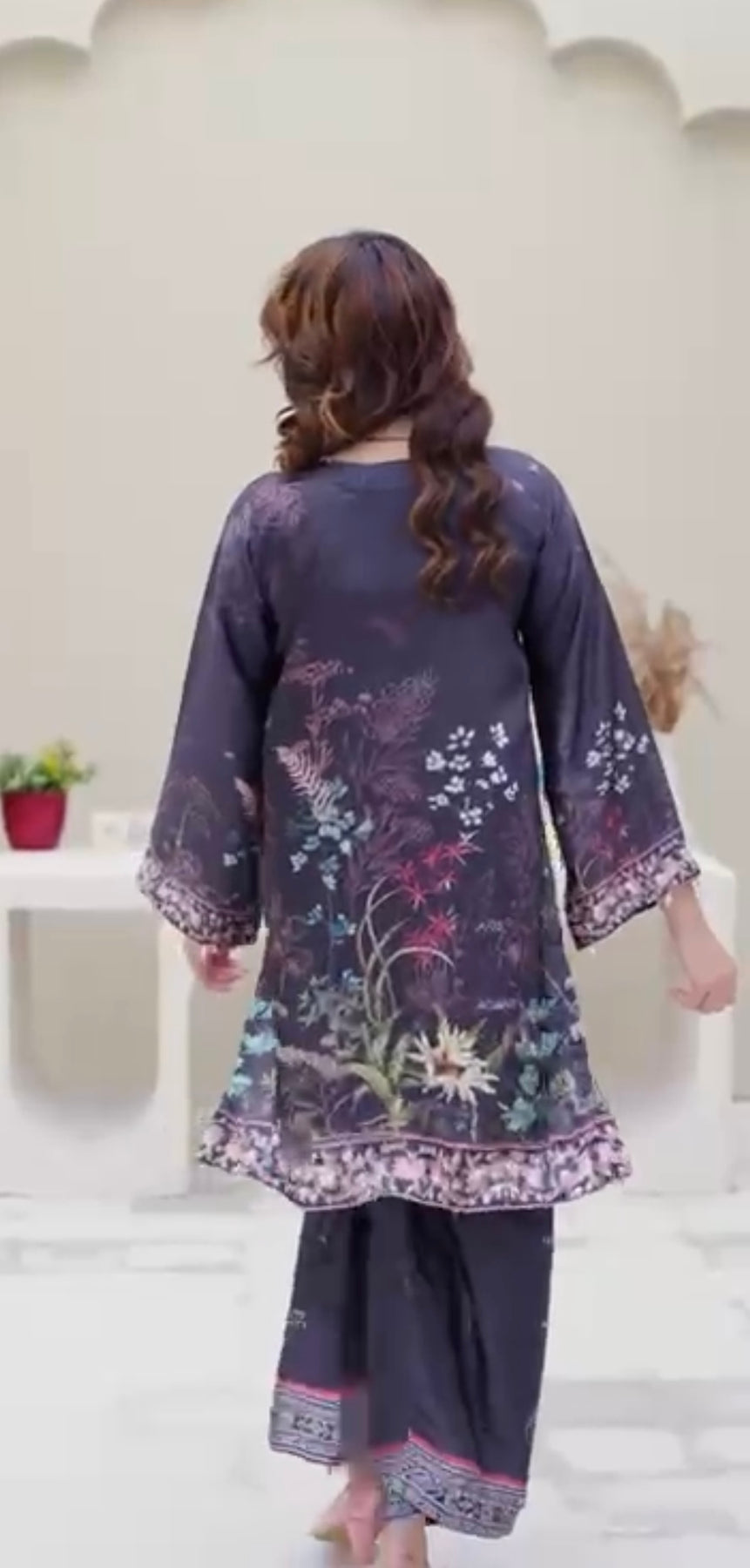 FULLY STITCHED, READY TO WEAR SHAMOZ SILK PRINT CO-ORDS 2 PIECES SUIT.