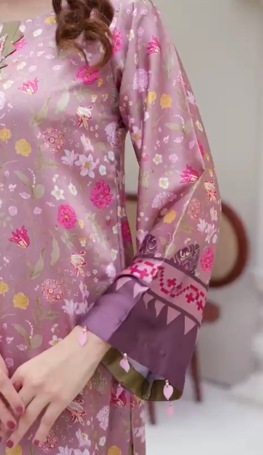 FULLY STITCHED, READY TO WEAR SHAMOZ SILK PRINT CO-ORDS 2 PIECES SUIT.