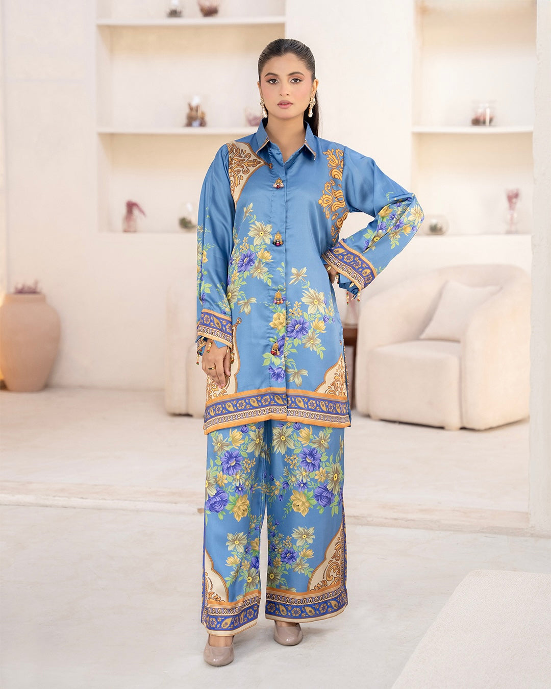 ZC03- SILK PRINT CO-ORD 2 PIECE SUT