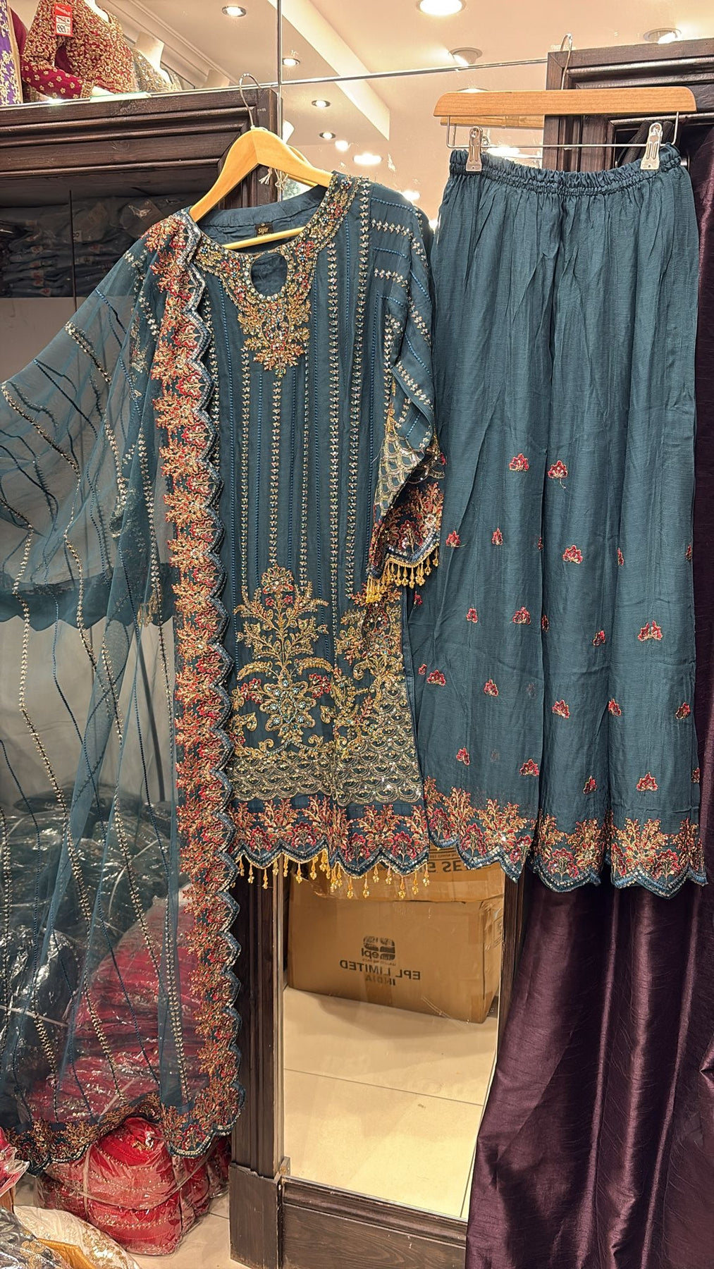 334A - TEAL CHIFFON EMBROIDERED SUIT