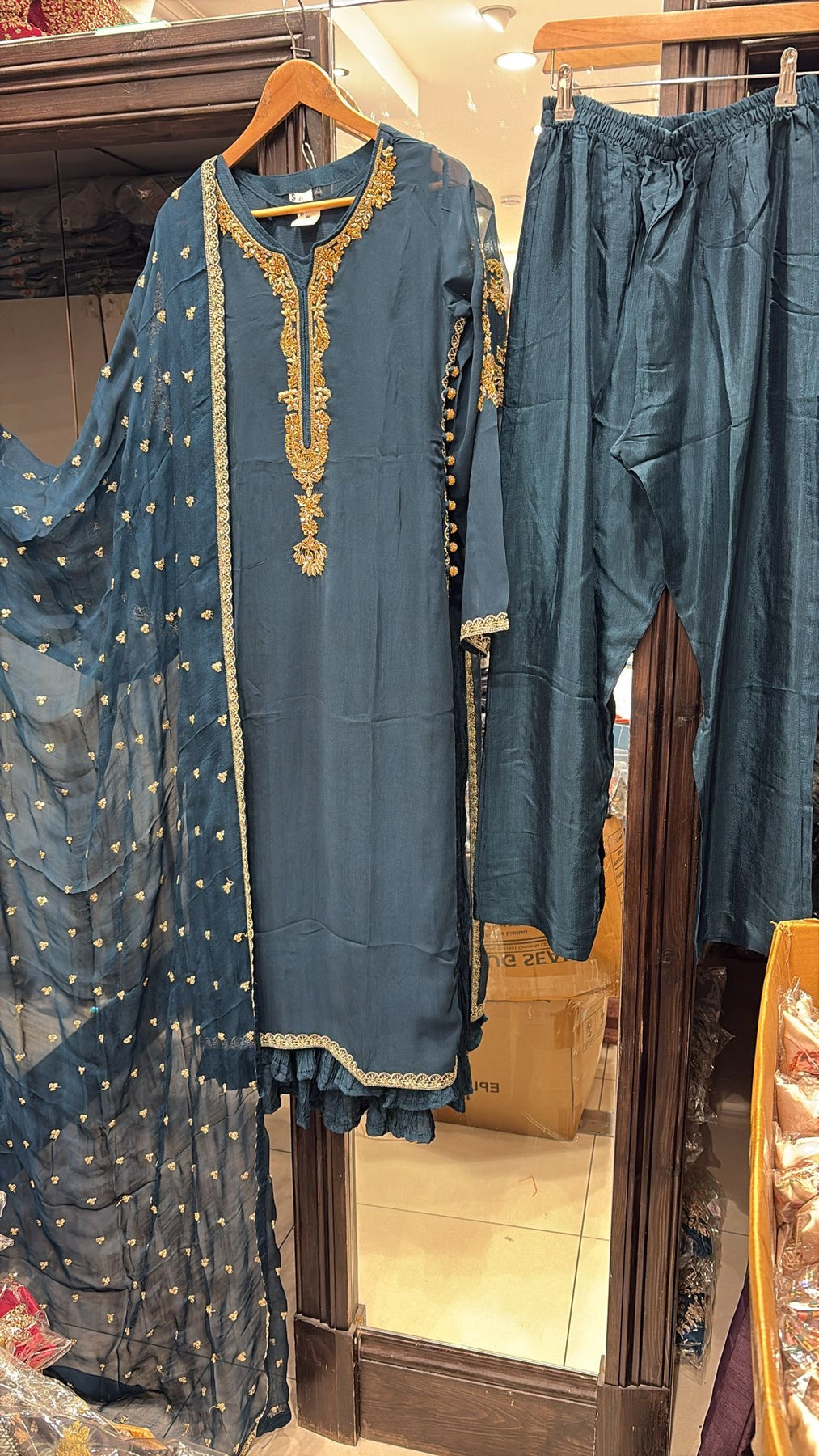 332A- TEAL CHIFFON EMBROIDERED SUIT