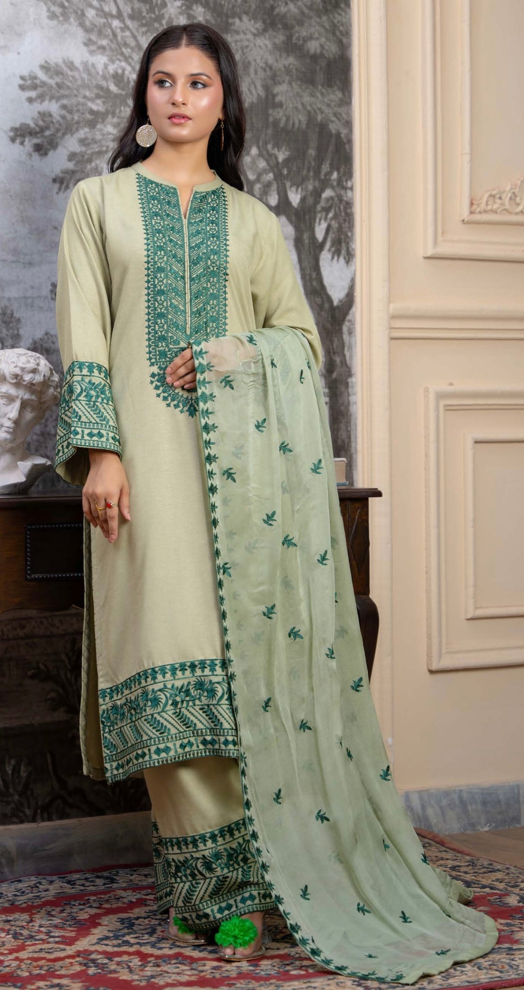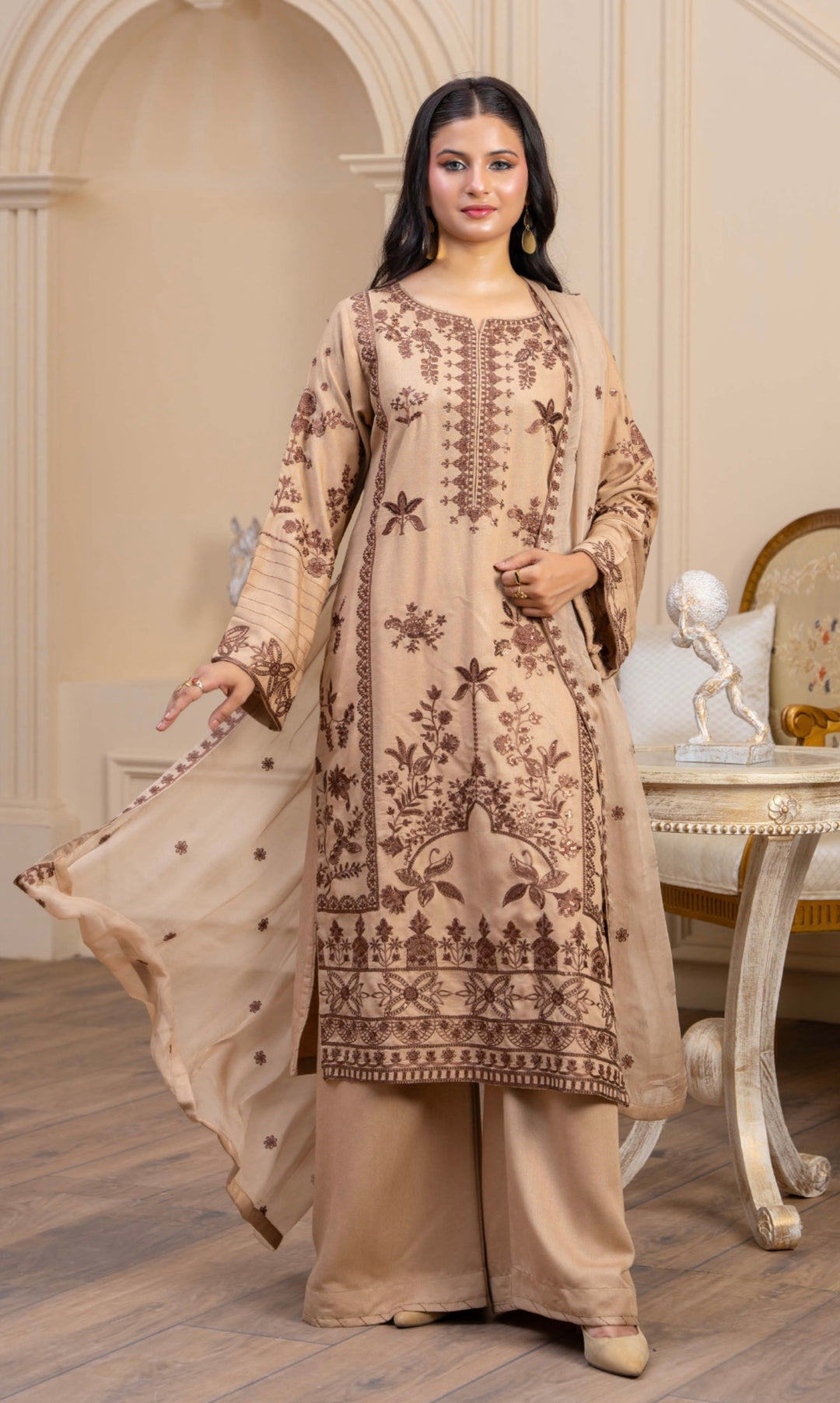 Zk07 - Zara Embroidered Karandi 3 Piece suit