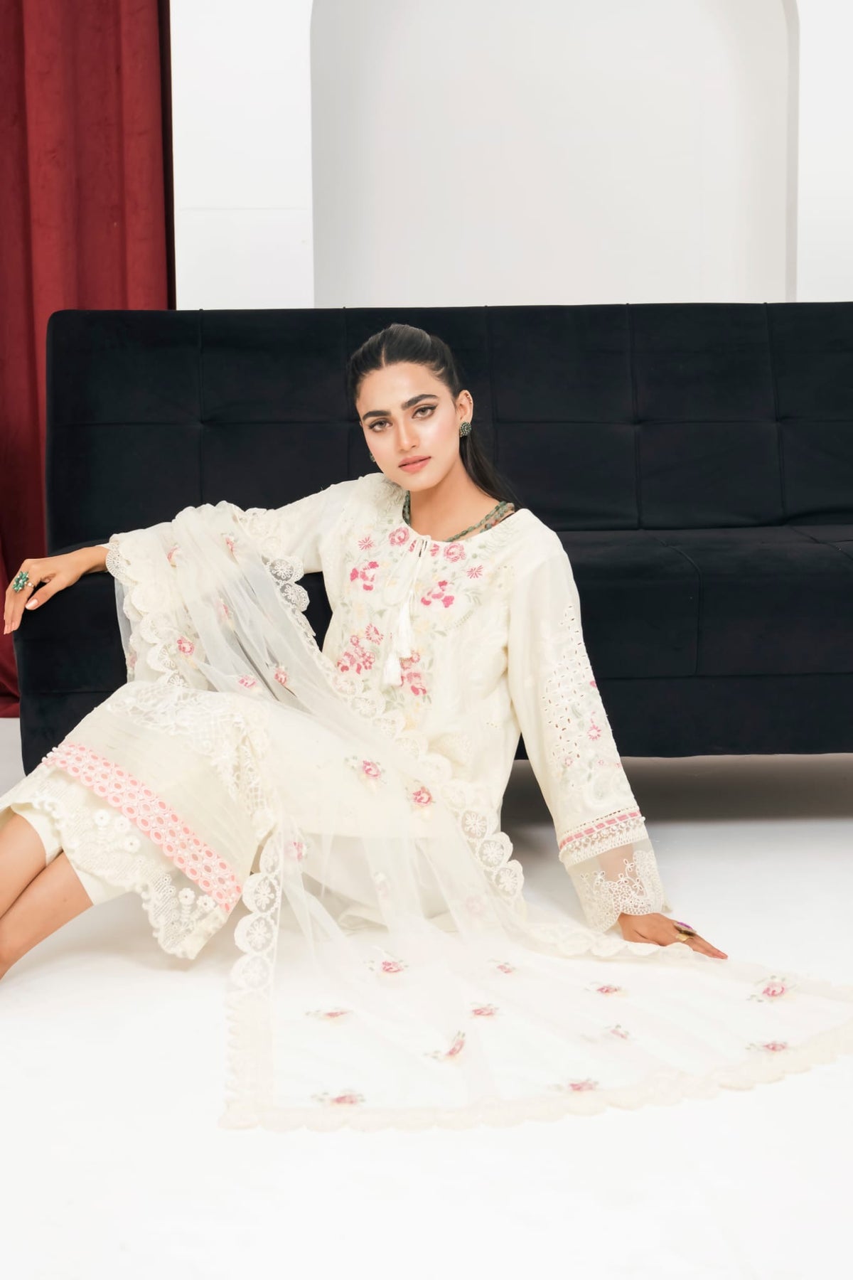 STUNNING EMBROIDERED CHIFFON PRINT DUPPATTA & BEAUTIFUL LINEN TROUSERS.