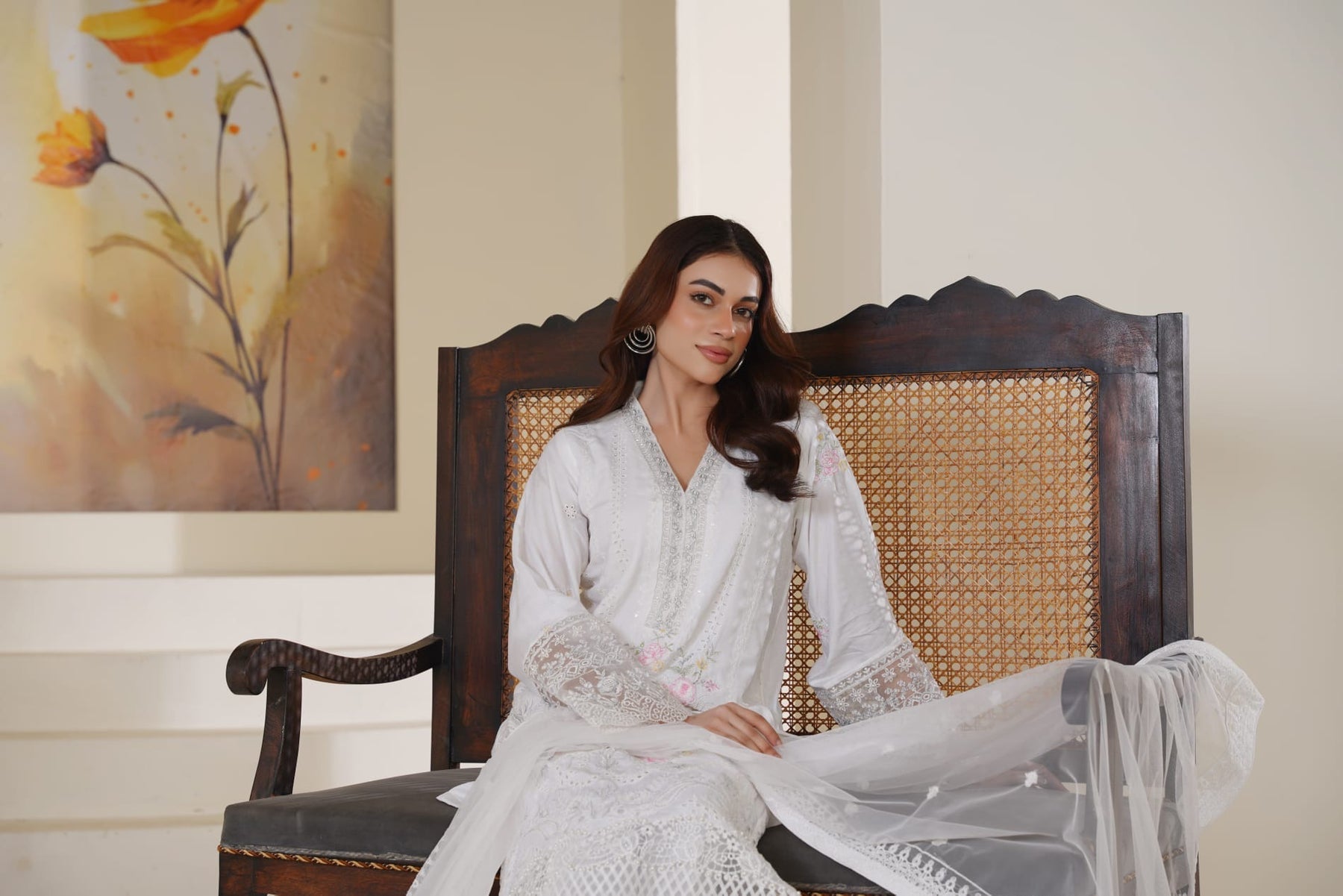 EMBROIDERED LINEN CHIKANKARI SUIT