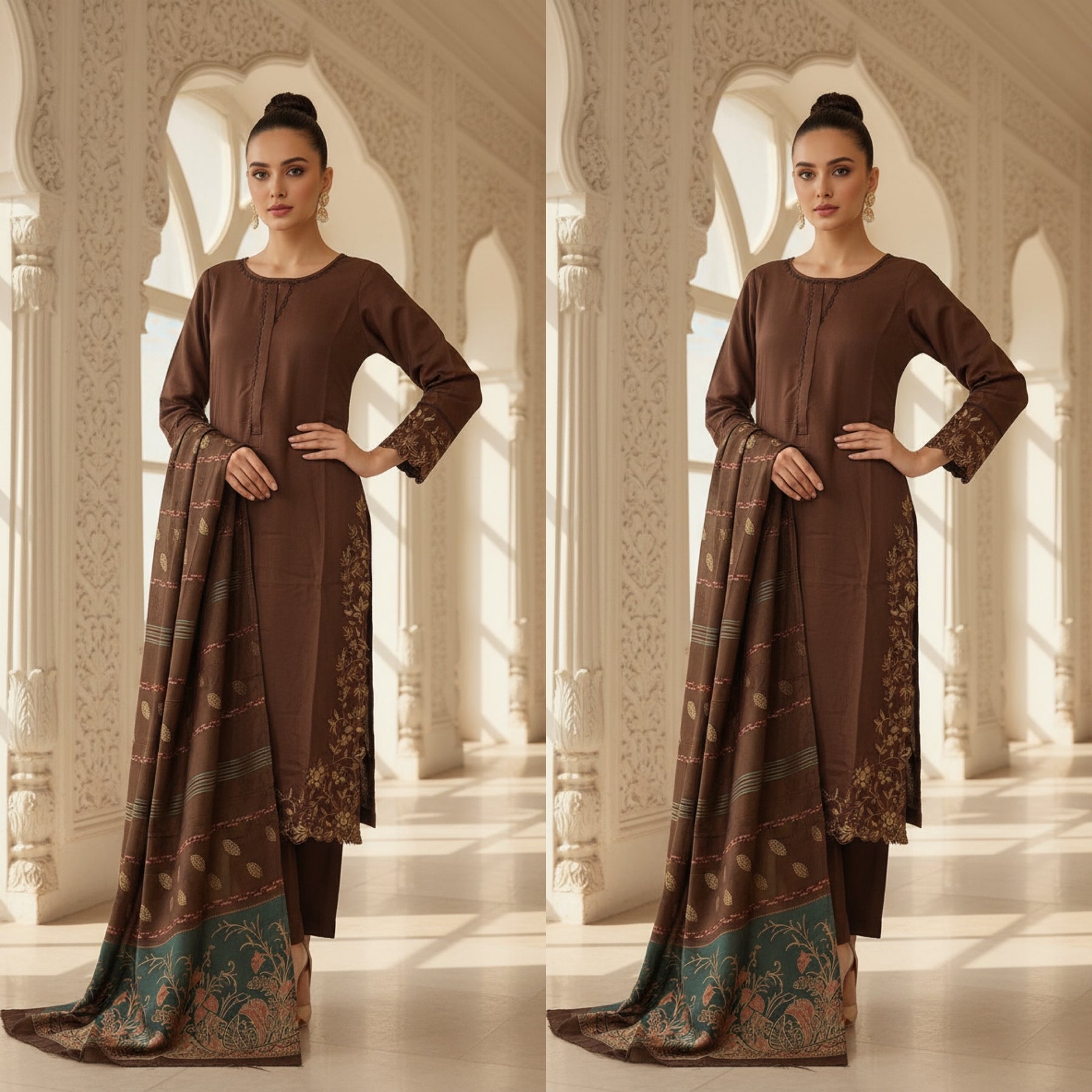 • PREMIUM QUALITY WINTER DHANAK LINEN FABRIC EMBROIDERED 3 PIECES SUIT…HIGH STANDARD BOUTIQUE STITCHING WITH LACE FINISHING