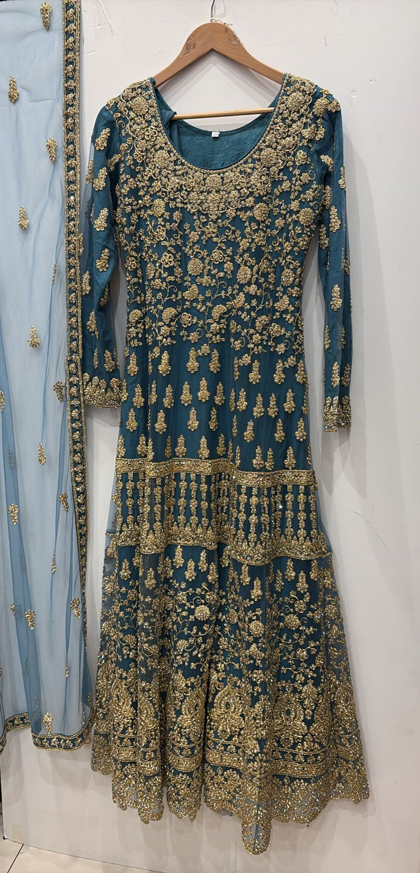 Embroidered And Embellished net long dress …..shirt both front & back features marvellous embellishments with Stones, Thread, dori,  pearls, and Resham.... Paired with Beautiful Embroidered duppatta.