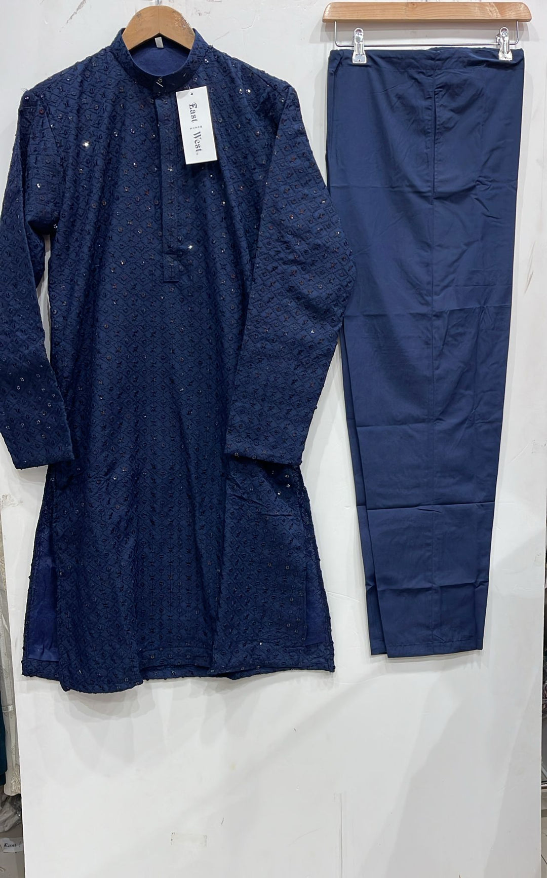 CK771A - Men’s Blue Cotton Hand Embroidered Chikankari Set