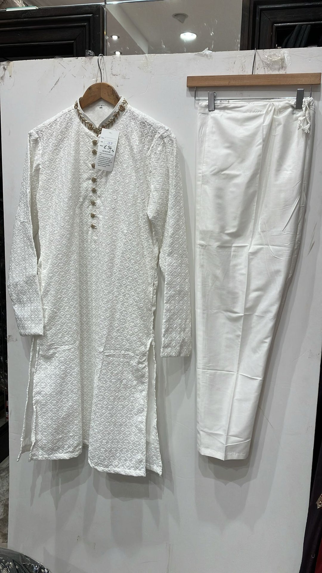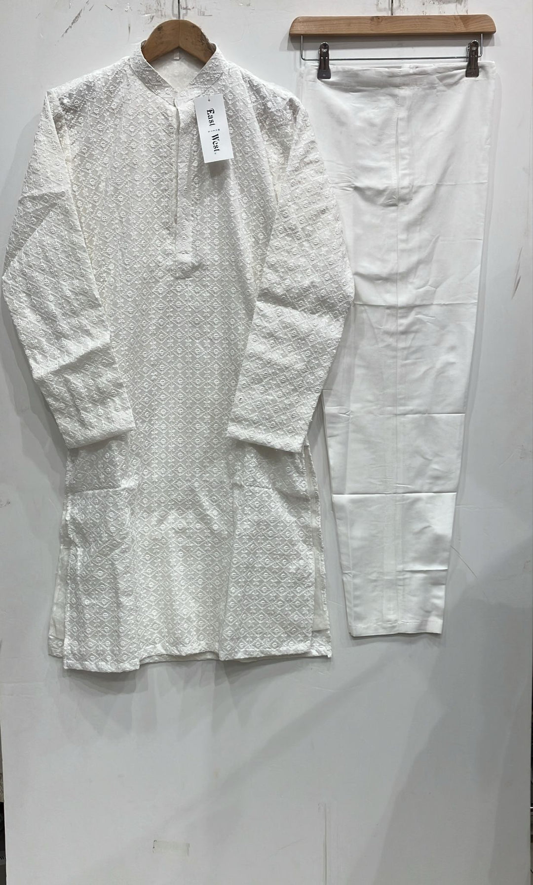 CK771C - Men’s white Cotton Hand Embroidered Chikankari Set