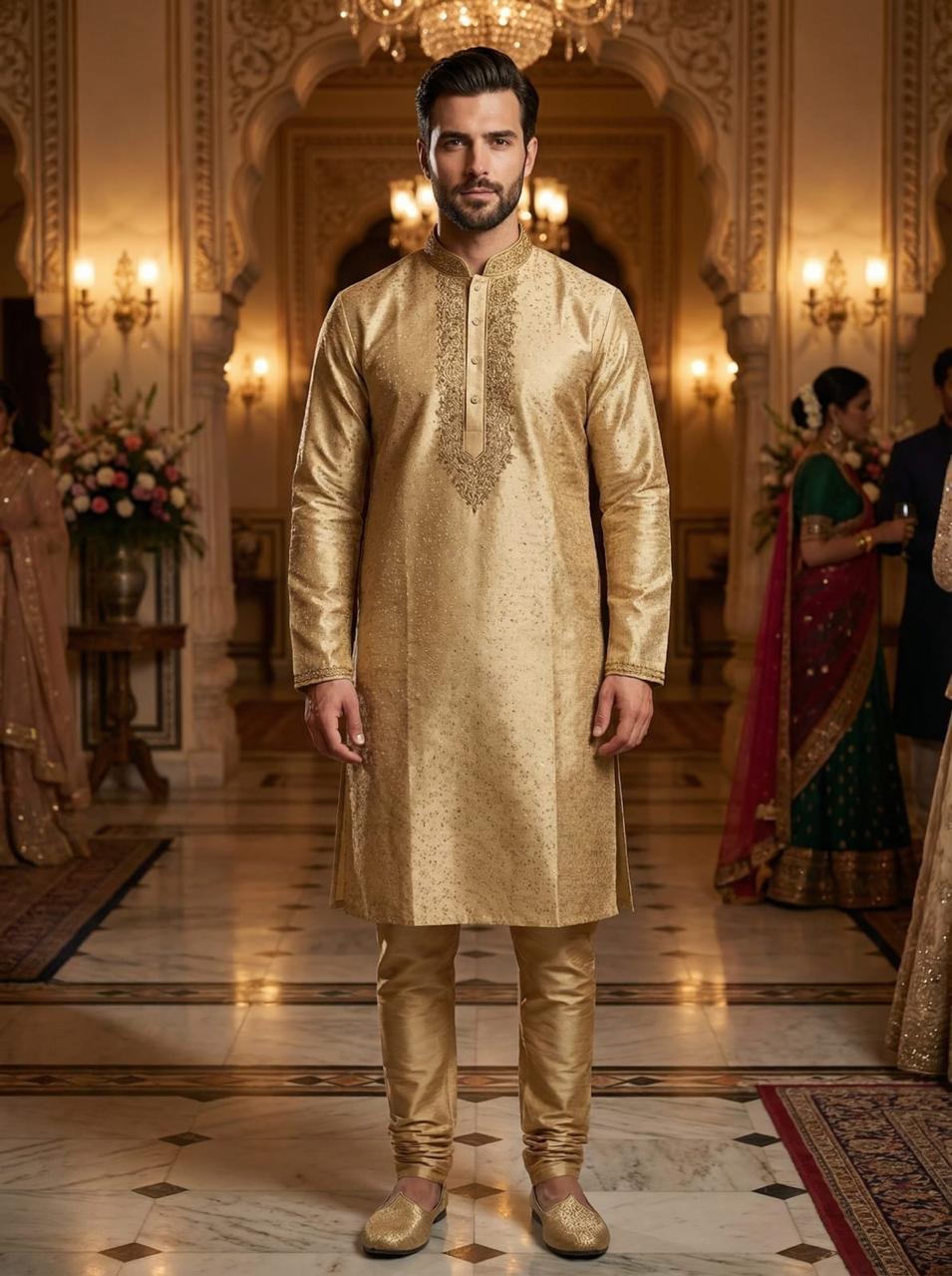 CM361D - MEN’S BEIGE GOLD HAND EMBROIDERED SET