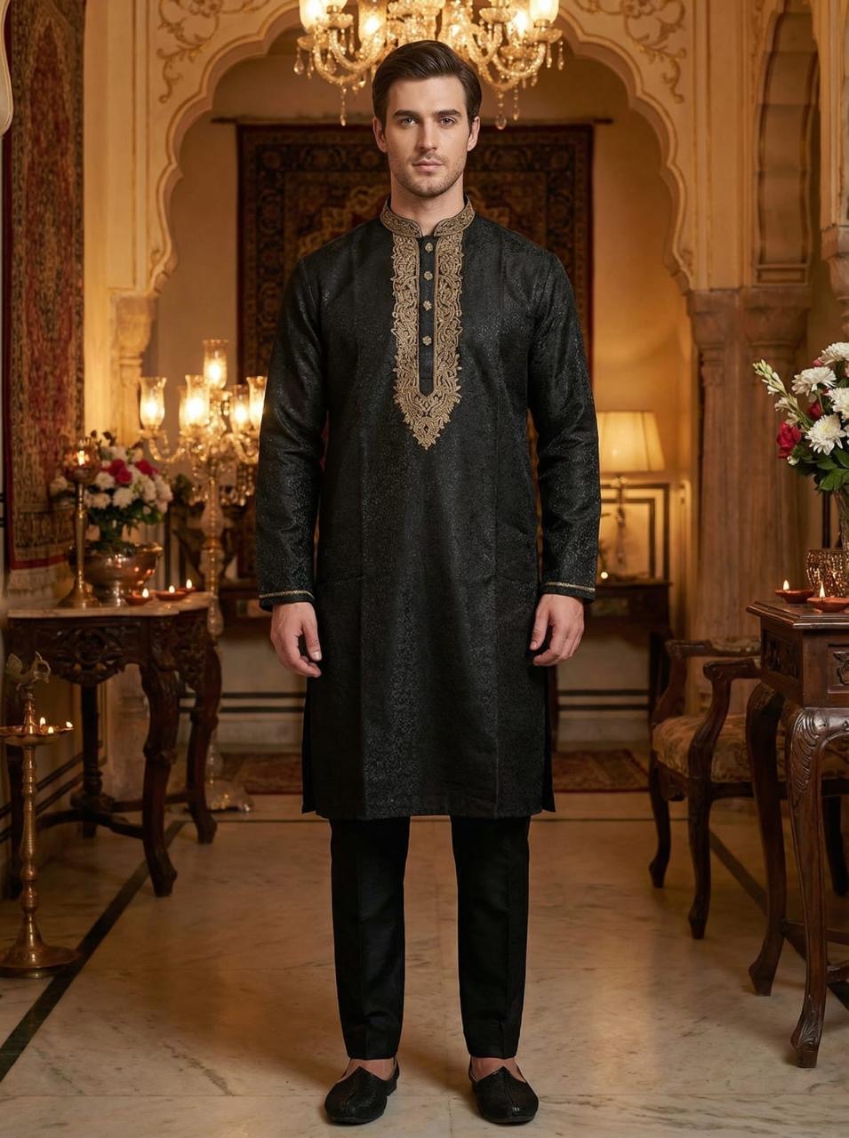 CM361A - MEN’S BLACK HAND EMBROIDERED SET