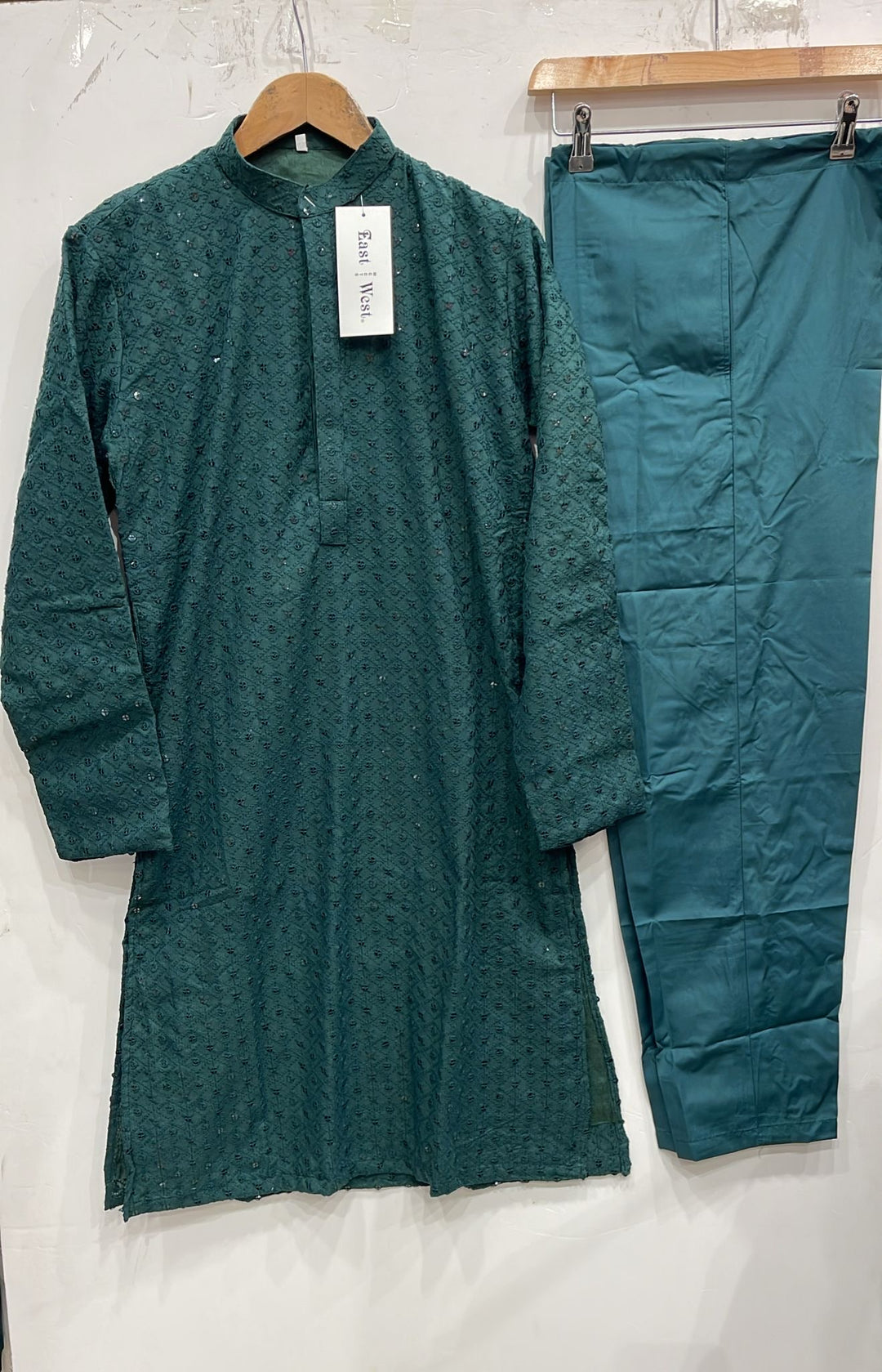 CK742 - Dark Green Cotton Chikankari Set for MEN