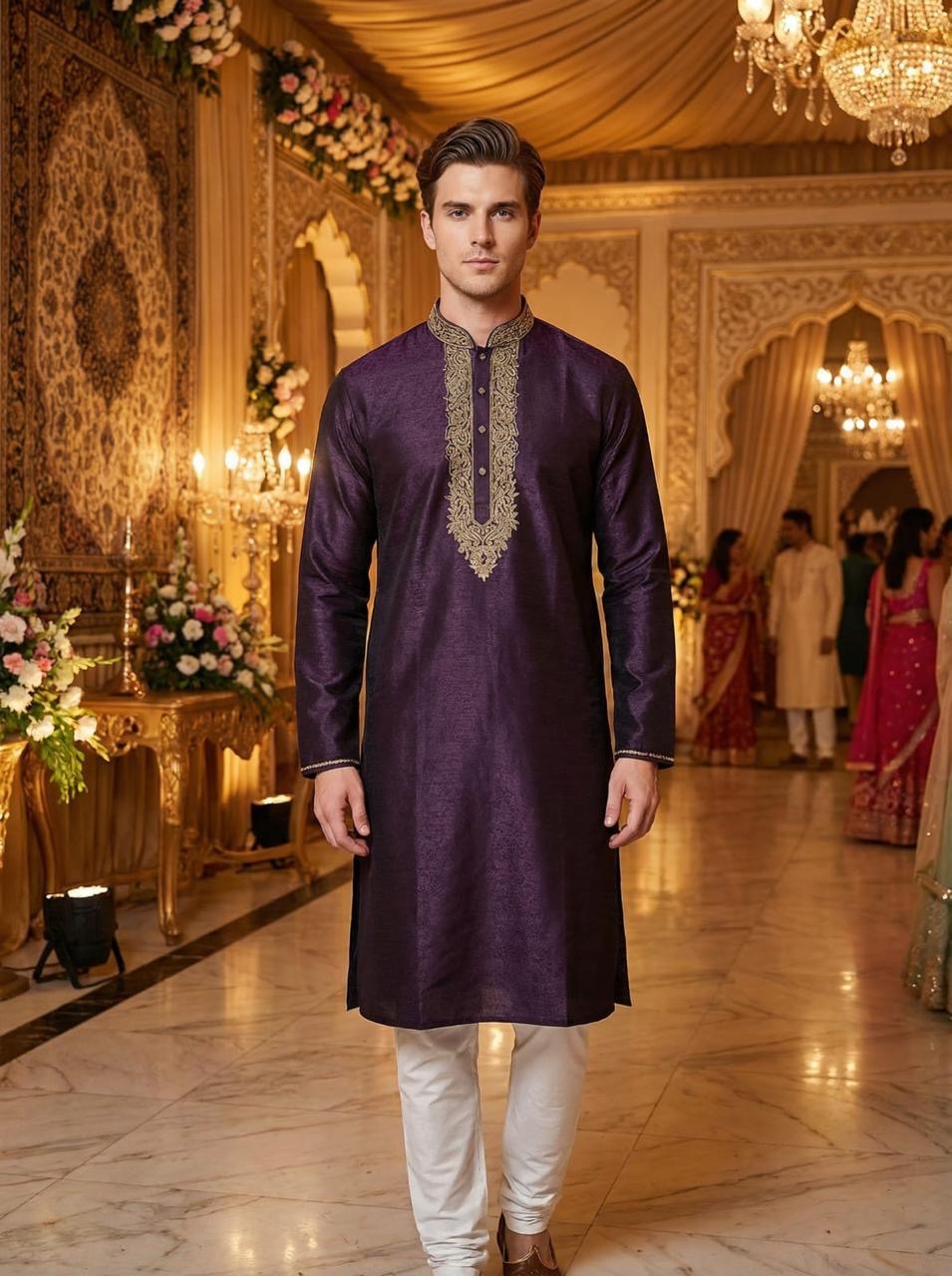 CM361B - MEN’S PURPLE HAND EMBROIDERED SET