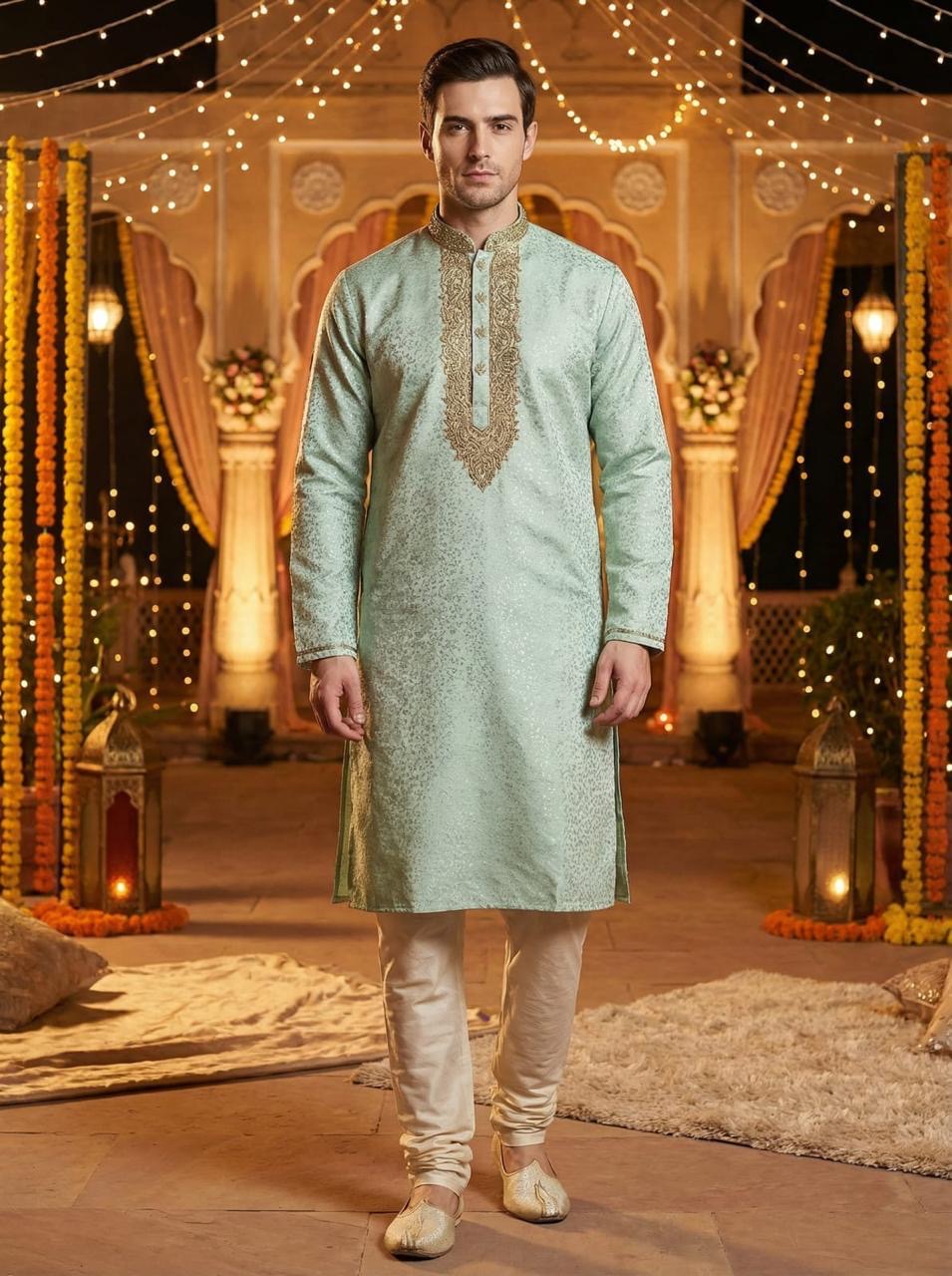 CM361C - MEN’S AQUA GREEN HAND EMBROIDERED SET