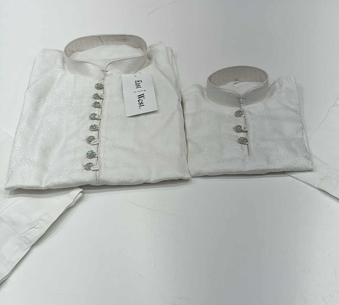 CK603B- Cream cotton satin kameez set for Men & Boys