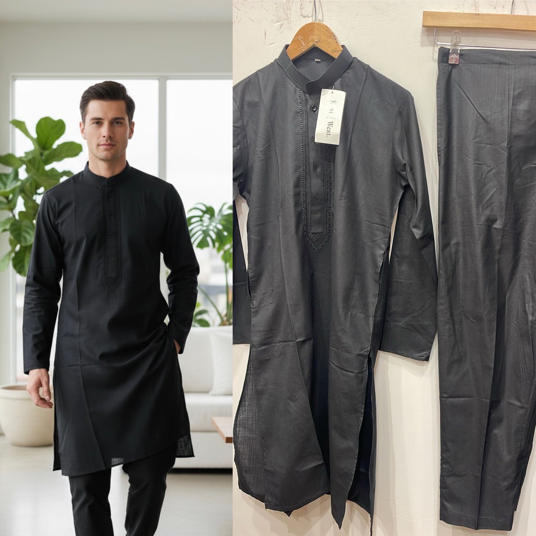 DN654a - Men's Black Embroidered Kameez set