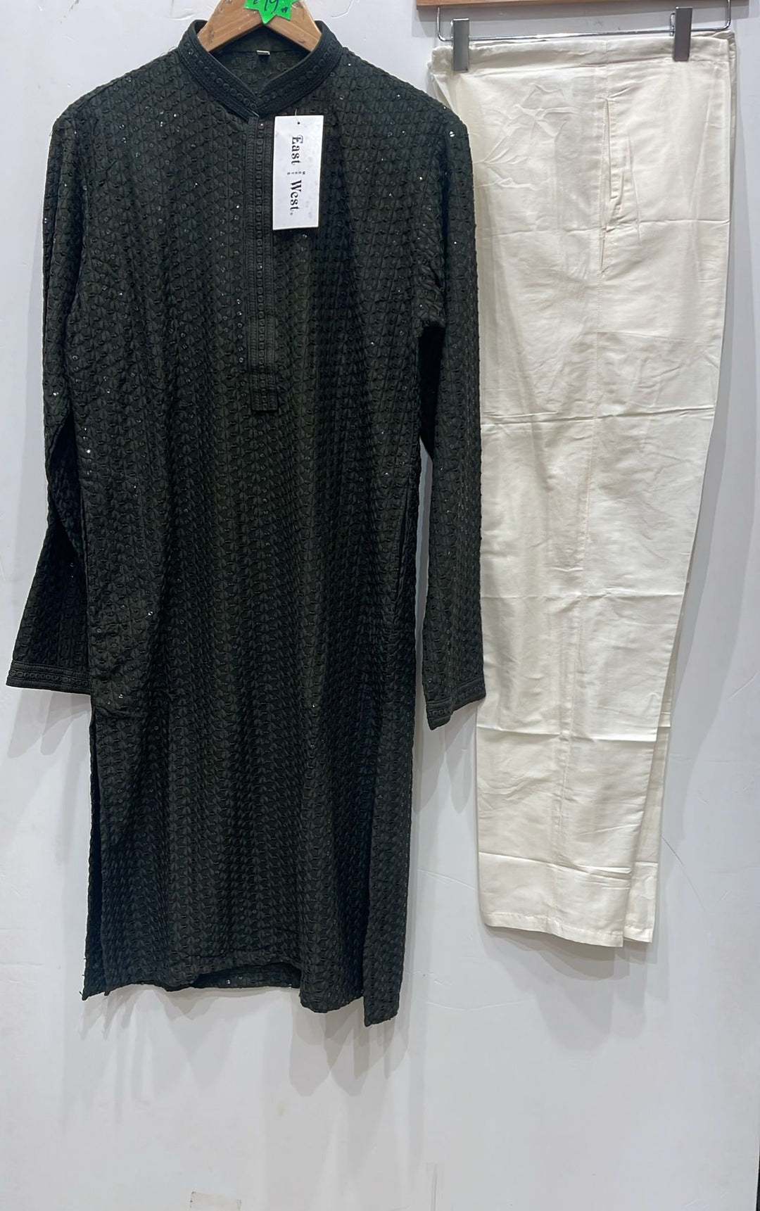 CK742 - Dark Green Cotton Chikankari Set for MEN