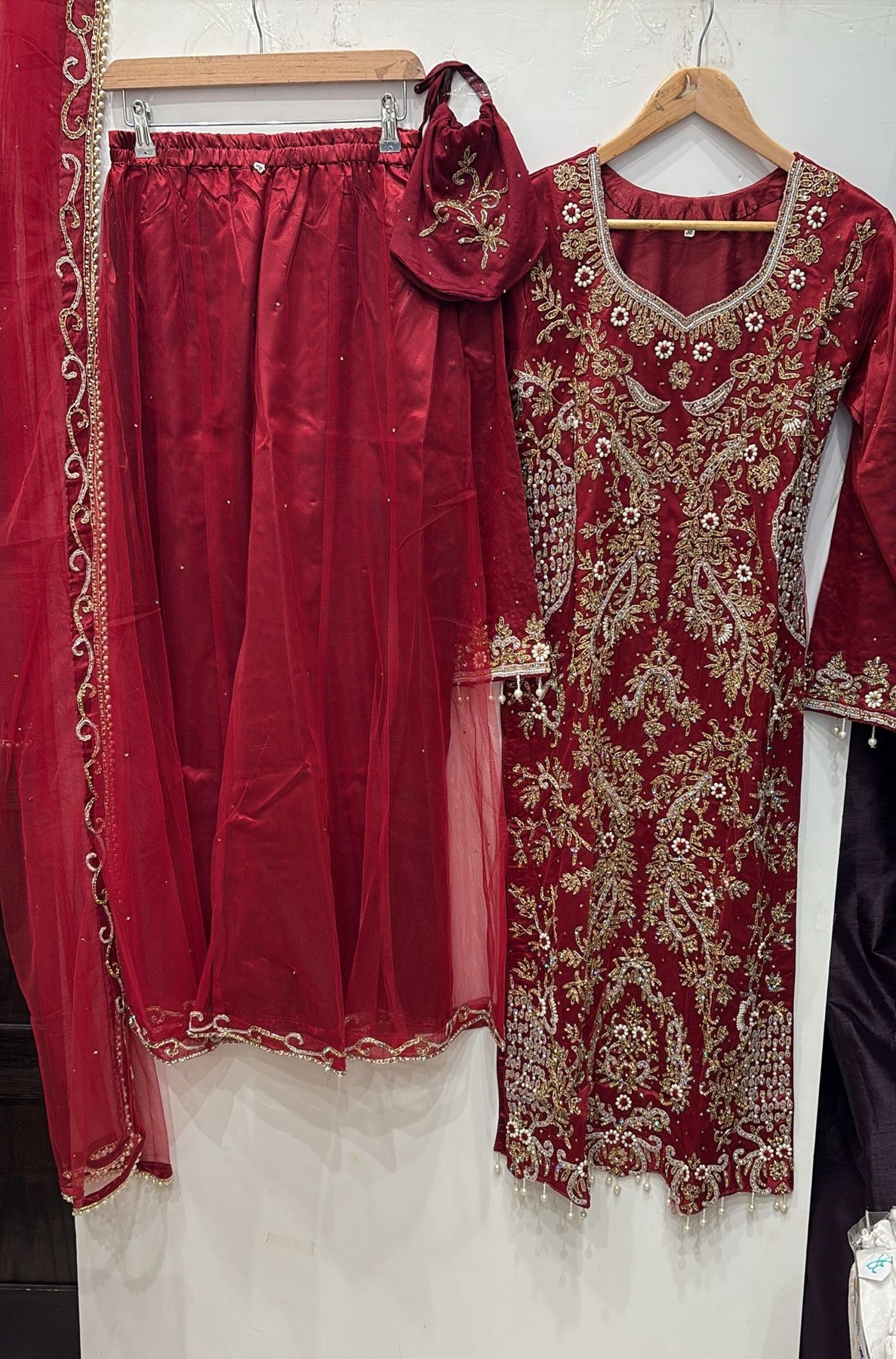 0173C- RED EMBROIDERED SHARARA SUIT