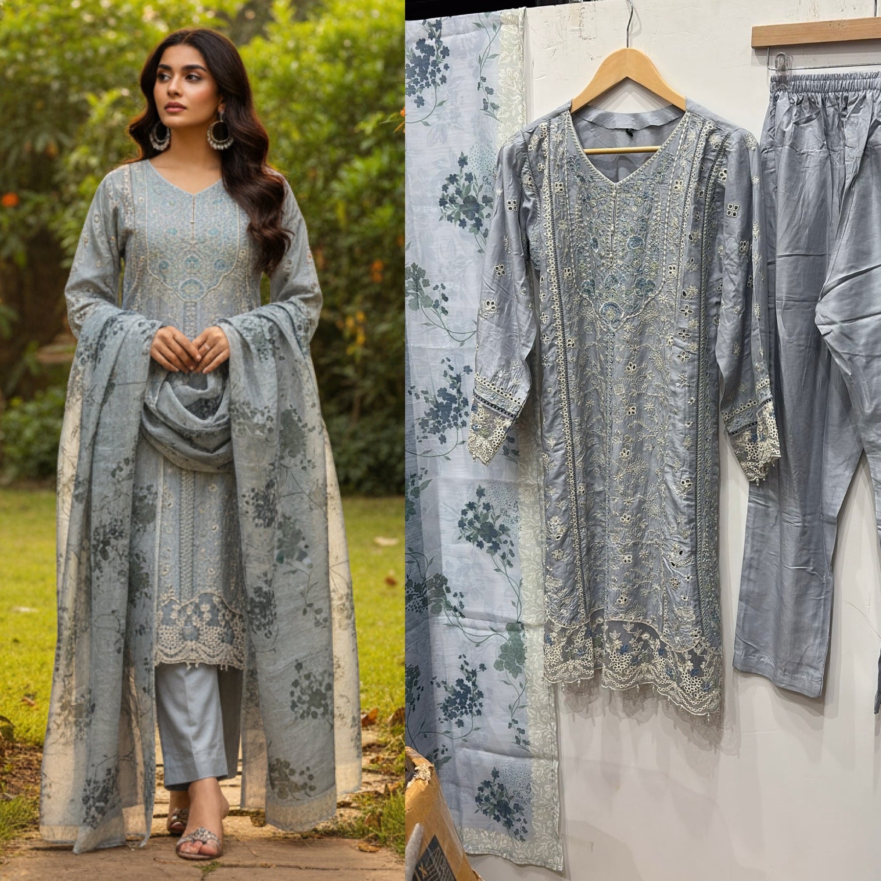 FULLY STITCHED, READY TO WEAR EMBROIDERED LINEN 3 PIECE SUIT STUNNING FANCY EMBROIDERED DUPPATTA & BEAUTIFUL TROUSERS.