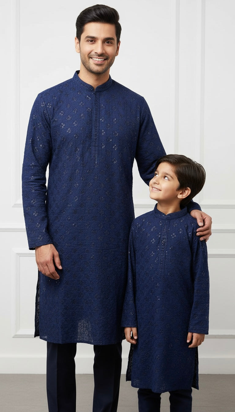 CK702 - Blue Cotton Chikankari Set for Boys and MEN